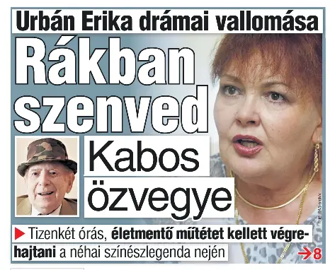 71 éves korában meghalt urbán erika színésznő, kabos lászló özvegye.